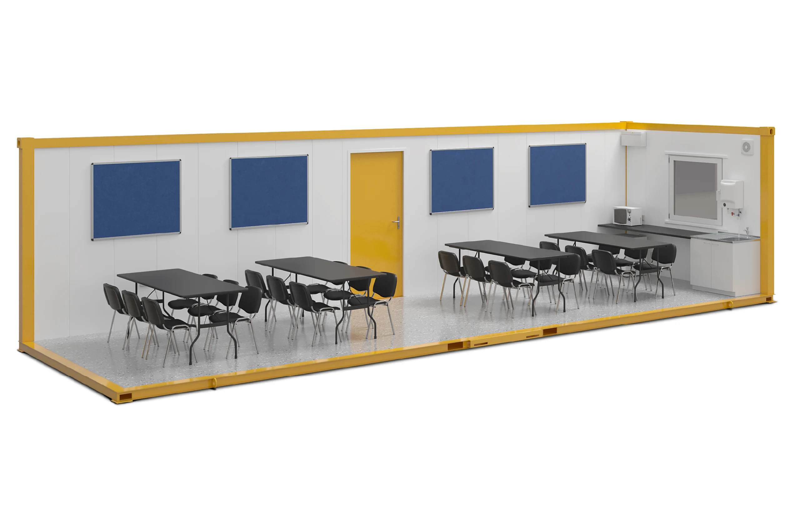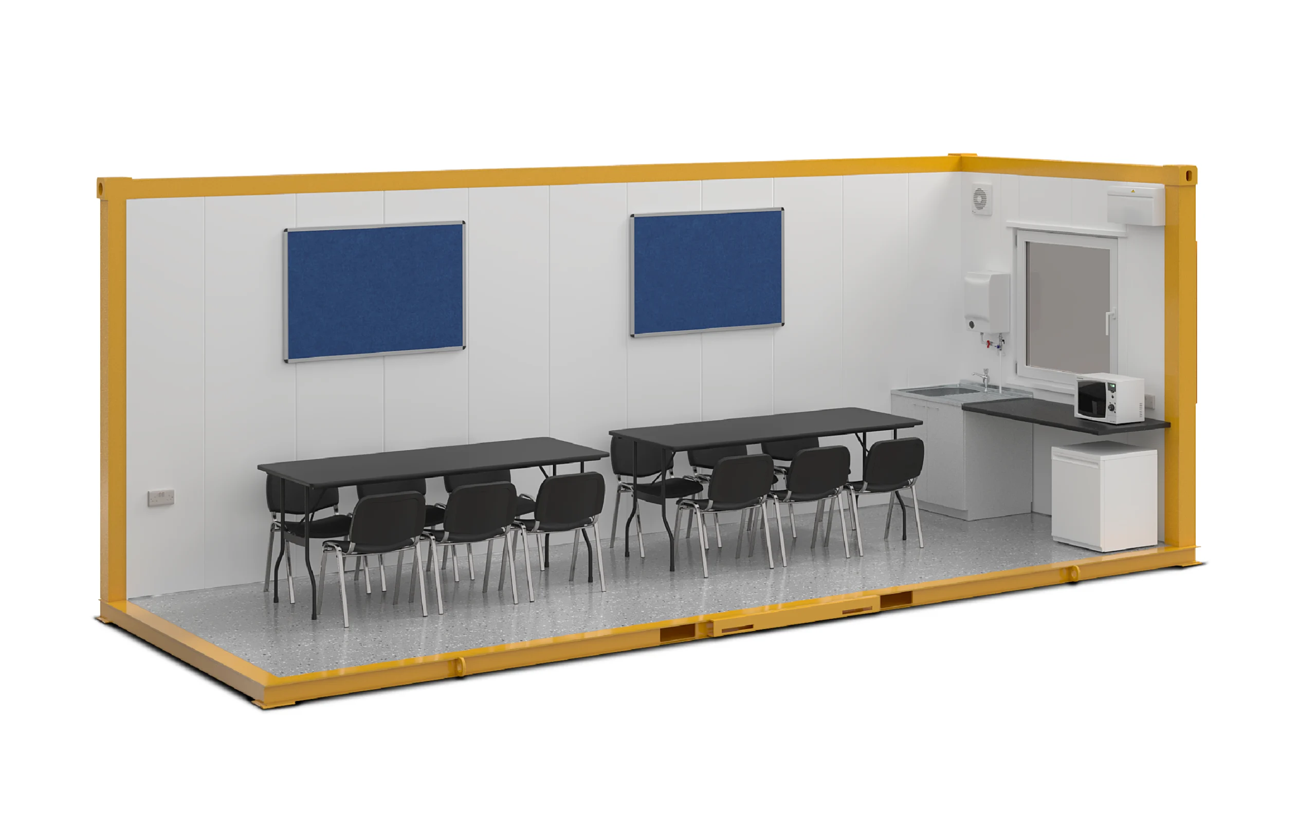 These large, spacious canteen units are great to provide a comfortable space to take a break on site complete with seating, double sockets, poly flooring, stainless steel sink and heating throughout.